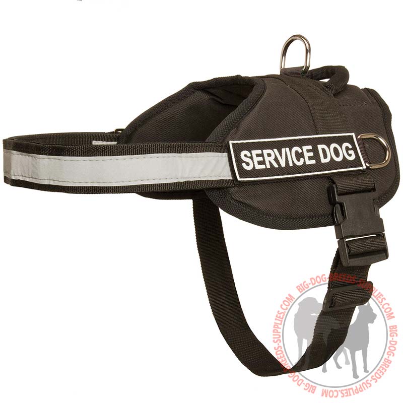 Our new harness is handcrafted of double-ply neoprene nylon that is why it is extra strong, weather-resistant and washable article. Uniquely Built Nylon Dog Harness with Reflective Front Strap is offered to you, dear handler of large dog breed. This model of harness will not leave even most meticulous customer unfazed. It is field piece of equipment to be used for dog training, walking and working. When crossing the road you will be able to be in optimal control of your pet with help of heavy-duty upper handle. The handle is easy to grab and comfortable to hold. It is almost impossible to find more functional dog accessory! There is no need to use low quality canine products when dealing with your dog - now you may provide your pet with the highest quality accessories if making purchases on our web-shop.