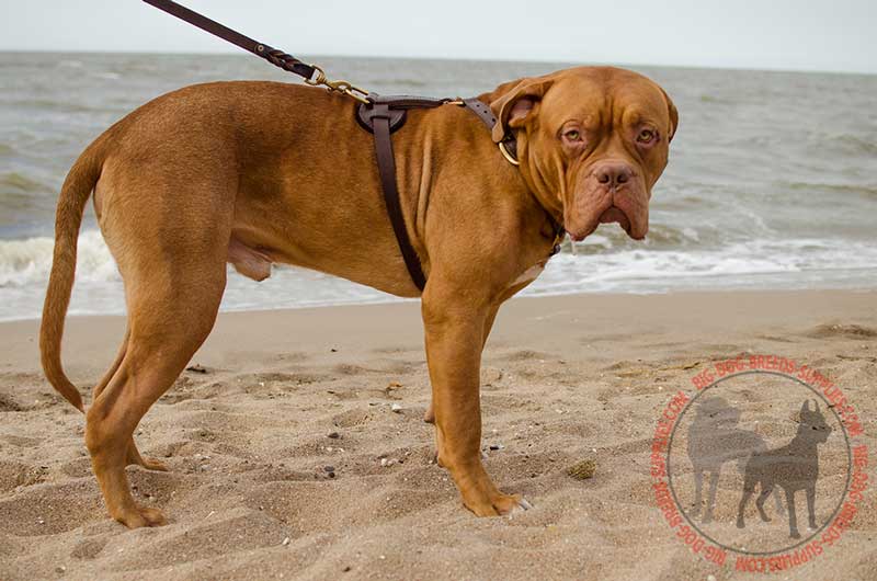 This Leather Harness fits Dogue de Bordeaux, Amstaff, English Bulldog, Mastino Napoletano, American Bulldog, Black Russian Terrier, Siberian Husky, Akita Inu, German Shepherd, Mastiff, Belgian Malinois and many other large and medium dog breeds.