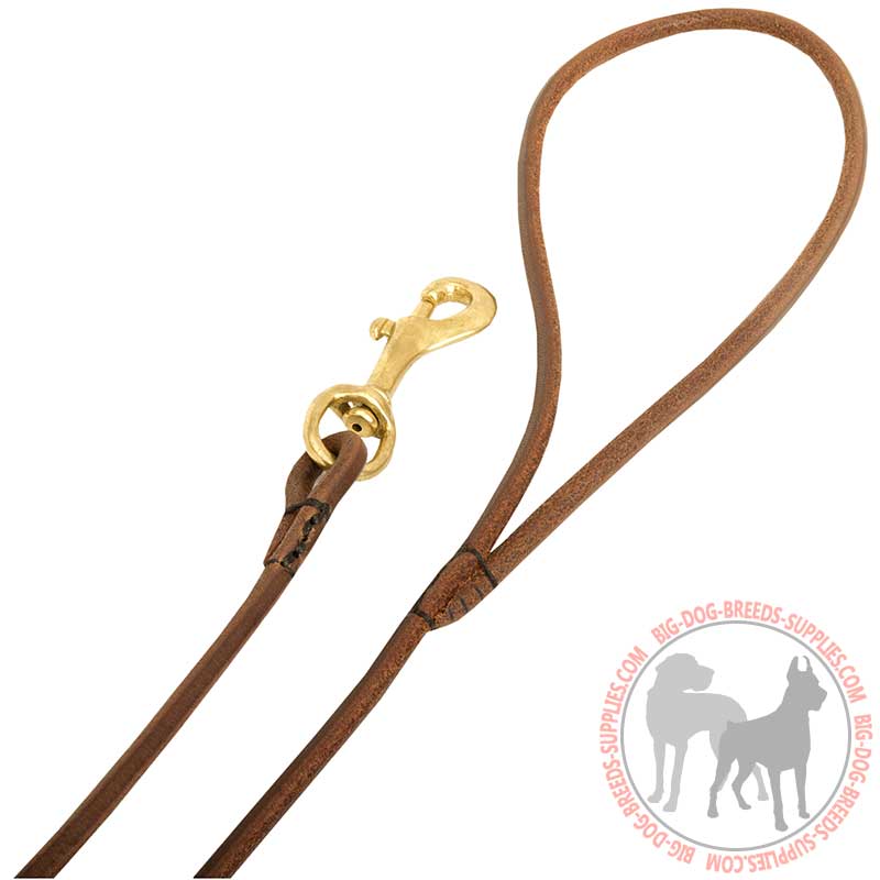Massive Brass Snap Hook on Leather Dog Leash