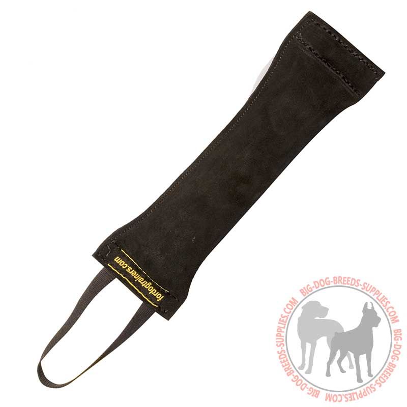Leather bite tug with heavy-duty handle to protect the hands from the bites