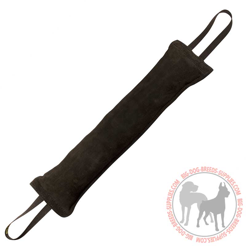 This Dog Bite Tug is made of authentic leather. Leather material has a lot of benefits: it’s durable, tear resitant and anti-allergic. This Bite Tug is made specially for training adult canines as leather is very solid and hard-to-bite material. As a result your dog’s biting abilities will improve to a large degree!