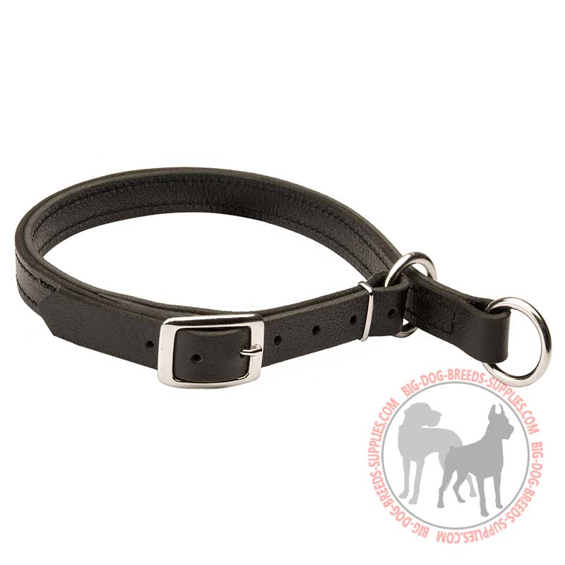 Leather choke dog collar double stitched for durability