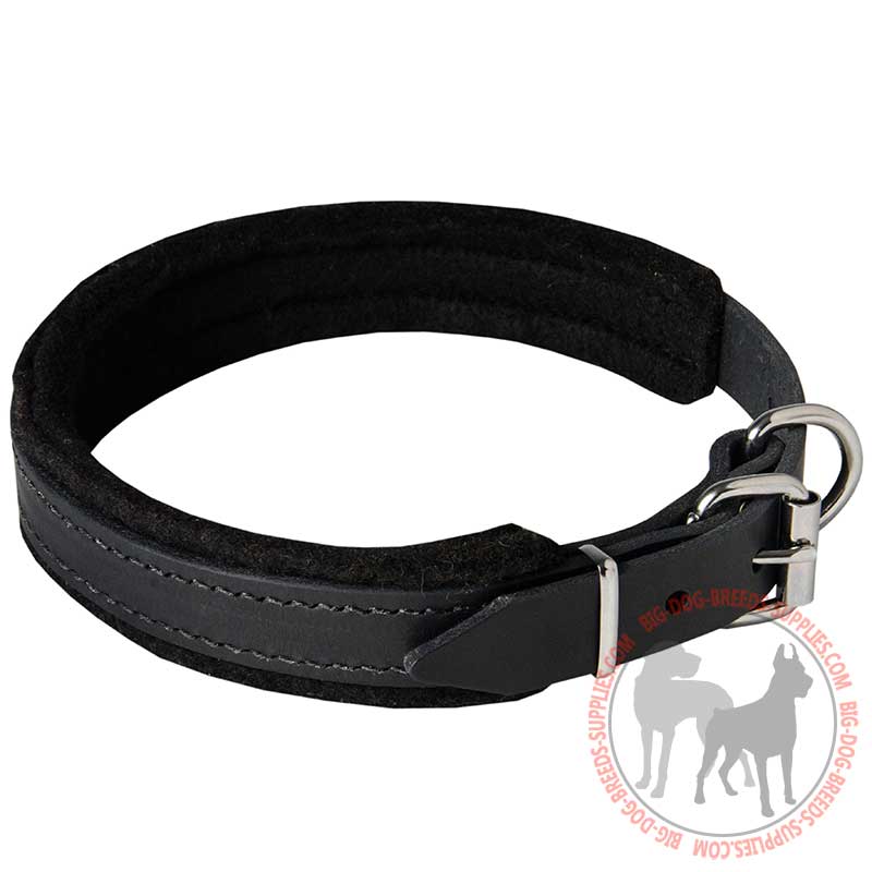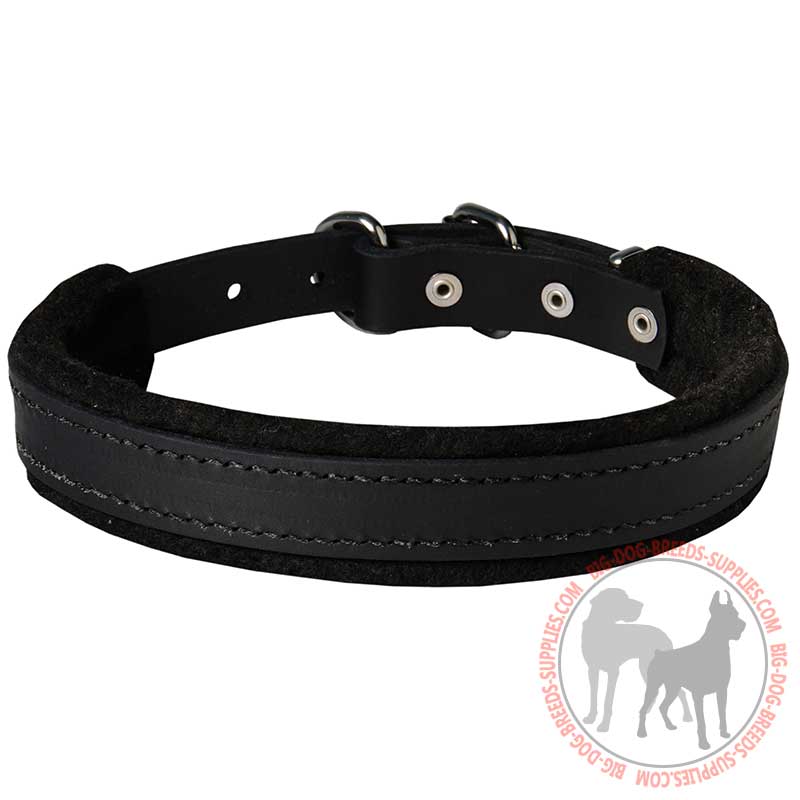 There are a lot of dog collars on the market. You desire to have the best collar for your pet. Despite this big choice you are unlikely to get the only one you need. You are an owner of large dog, threfore his equipment is to be strong and wearproof. Whatever your dog breed is, you are recommended buying only high quality accessories for him. In this case, your dog does not run the risk of deranging his constitution even if wearing it as often as possible. You should be careful when choosing everyday gear for your pet. The better equipment you'll get for him the happier he will be when having it on. Take a look at Standard Buckle Dog Collar that has improved design. Padded with thick natural felt for optimal comfort during exhaustive training sessions this collar will protect your pet's neck from hurting.