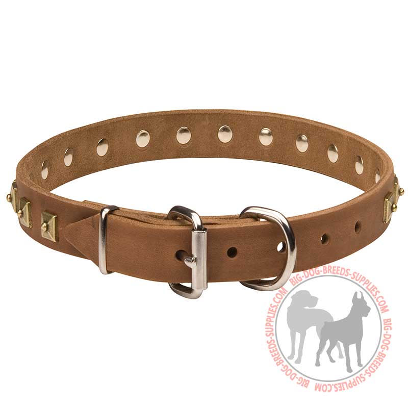 Stylish Leather Dog Collar with Gorgeous Goldish Studs
