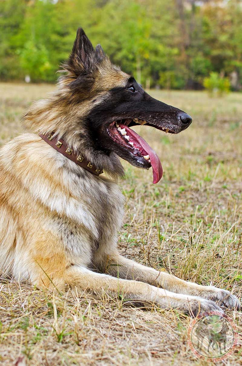 Tervuren Leather Collar"Caterpillar" with Centered Row of Amazing Brass Studs