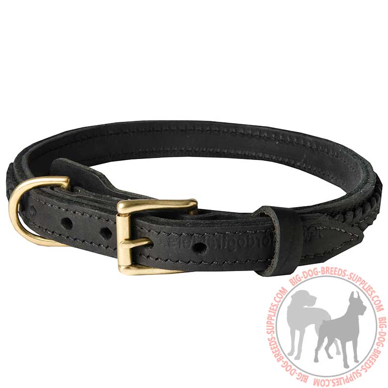 Modern times offer us a lot of useless and worthless products so you have to spend either a lot of time, or a lot of money to find something good. However it doesn’t concern dog equipment as quality of our products is high, while the prices are affordable. Thus, you may see that the braid is not glued, it is stitched with strong nylon threads so it will not fall off and the collar will be as gorgeous as it is now over the years. The surface is smooth and gentle to prevent any inconveniences of your pet during wearing, while genuine leather smell pleases with understanding that the collar is made of natural material, absolutely safe for the dog.