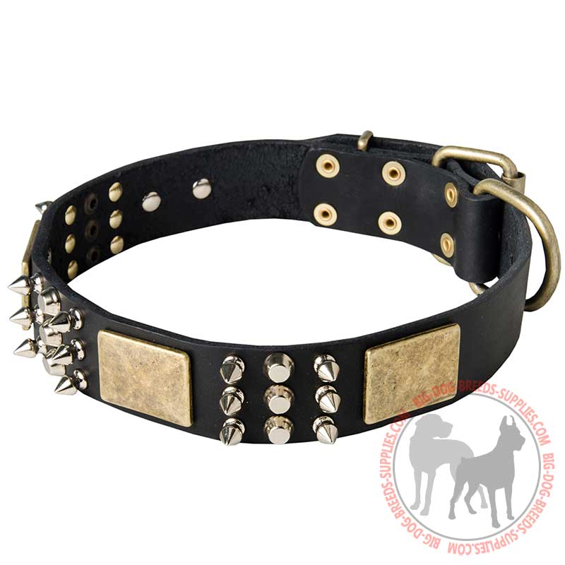 Collar for Cane Corso breed with brass plates and nickel cones and spikes