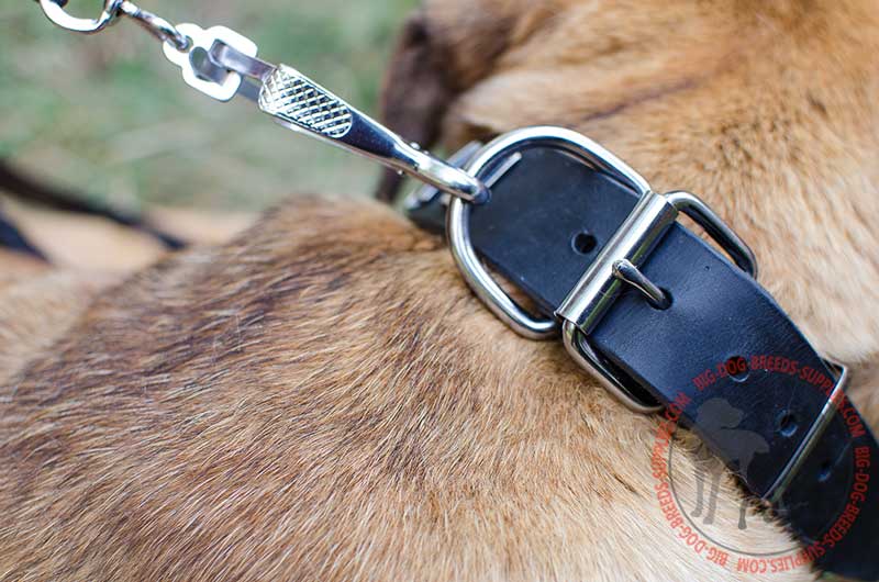 Provide your pet with safe and comfortable walking or training accessory – get this leather canine collar for him / her. When having this item on your pet will feel comfy because the leather is gentle and the hardware is smooth. Even if his skin is sensitive it will not be rubbed by the wonderfully smooth polished surface from the inside of the collar. This pet accessory does not dig into the skin as its edges are rounded. Your dog will love this collar as much as we do.