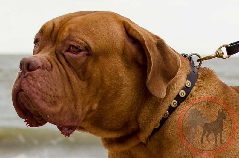 Leather Dogue de Bordeaux Collar with Brass D-ring