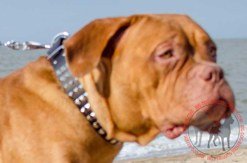 Leather collar for Dogue de Bordeaux for controlling, training and walks