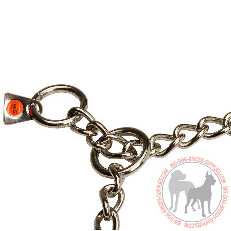 Herm Sprenger guarantees excellent German quality of the product that is proven by its long service and high endurance in tense situations. The links of the chain are connected without welding so the tensile strength of the collar is increased. Large rings slide easily on the chain without being stuck, thus, providing safe training and control of your pet.