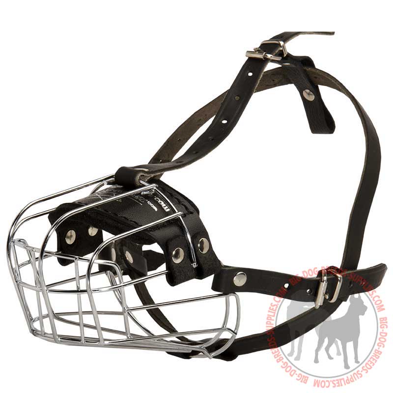 This gear is made by hand. Its metal construction is very strong and almost unbreakable. Each large dog can wear this equipment and feel good at that. Putting it on dog snout you ensure its reliable fit with flexible straps. Never be afraid of muzzling your pet if you get a good muzzle for him. This very muzzle will suit him fine and look well on him. Fitting the gear to your pet's snout you fix the straps in 4 major places. You are guaranteed to fit it snugly to pet's snout if adjusting the straps properly - tighten them so as to prevent pawing the gear off.