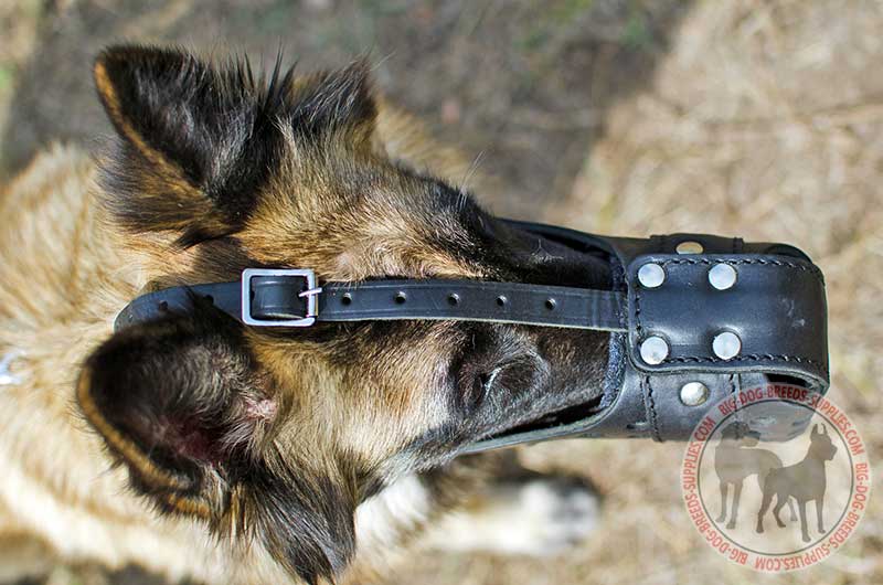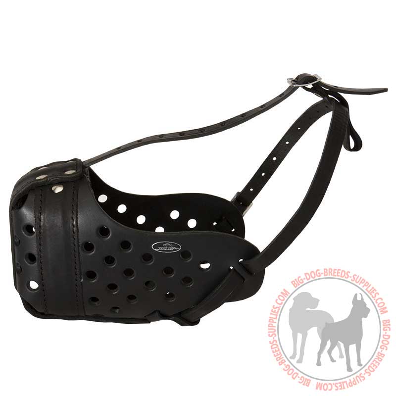 Dog leather muzzle does not interfere with the pet's natural breathing