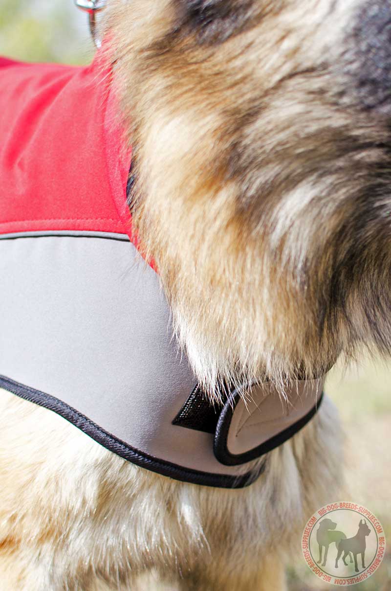 For extra comfort and warmth while winter walking this coat is equipped with solid stand-up collar. It is a great innovation in dog’s coats design, cause it protects your canine’s neck from cold. Be sure that wearing this winter coat, your dog will feel safe no matter if it’s snowing heavily or the cold wind is blowing. The neat hole near stand-up collar is made specially to facilitate a leash attachment for an ordinary collar on your dog’s neck. All you have to do is to put the leash through this hole and to connect it directly to the collar ring!