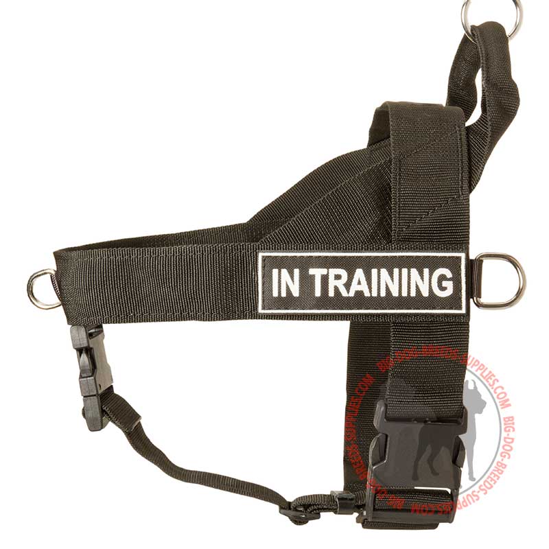 - Only with this harness you can control your dog on 100% as upper nylon handle is easy to grab and strong. It is located on convenient distance for the hand so you will take it quickly when situation requires.