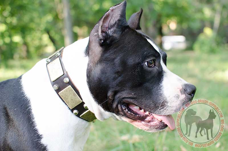 Collar for Amstaff with hand-set vintage plates and pyramids